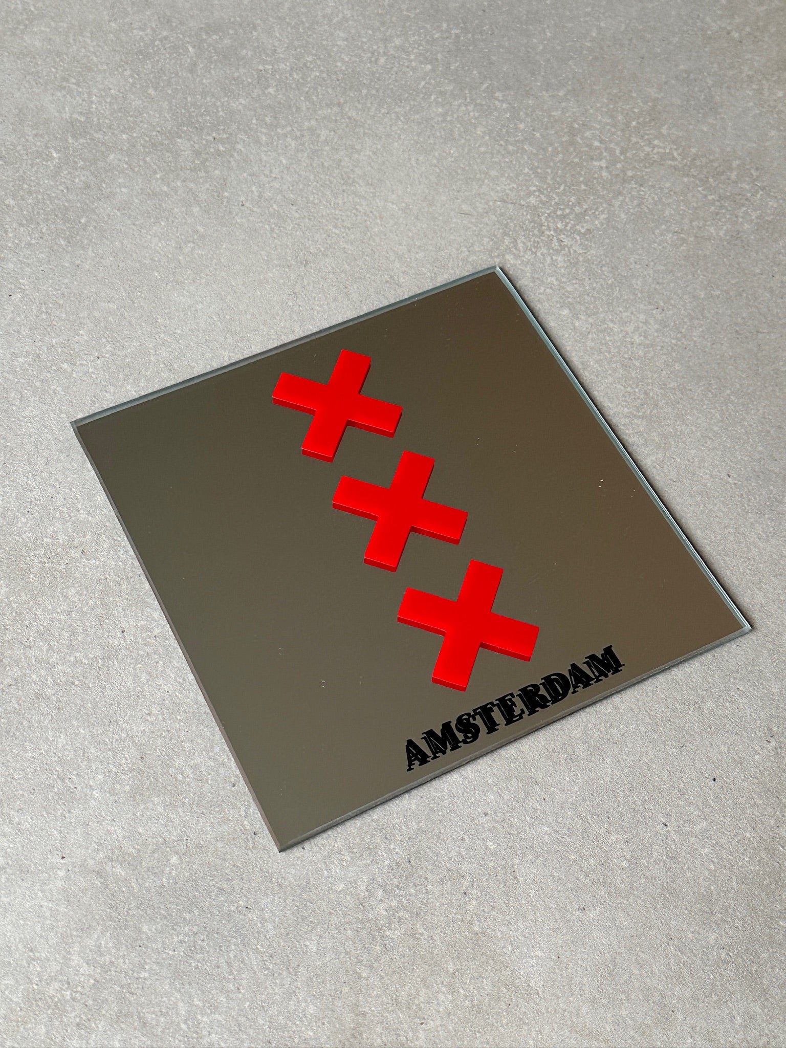 Amsterdam crosses with text mirror red