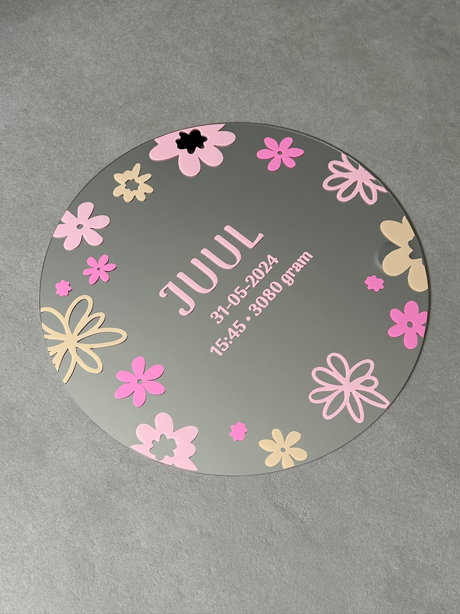 Custom birth mirror pink tones