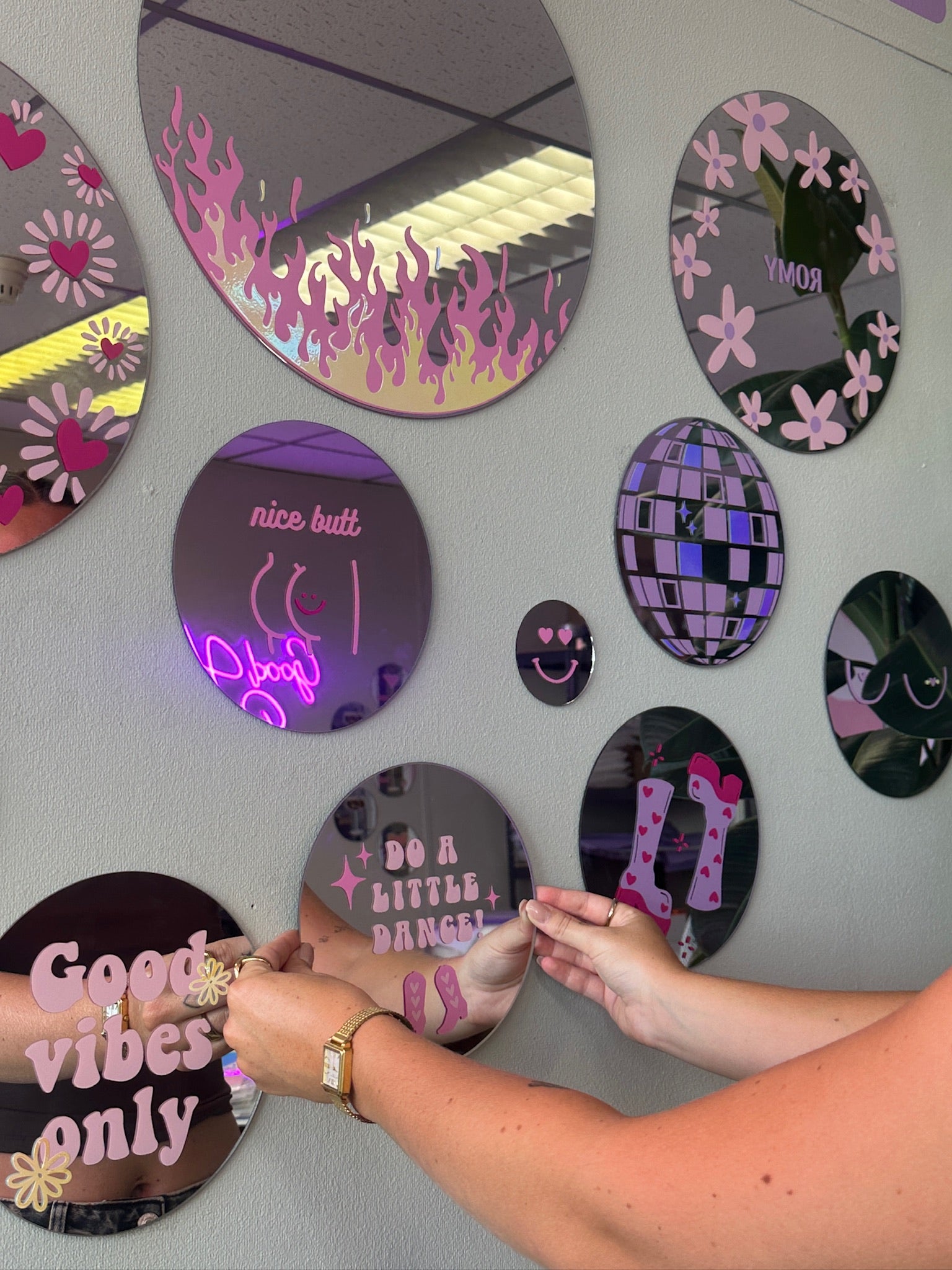 Spider web mirror baby pink fuchsia